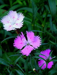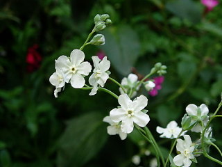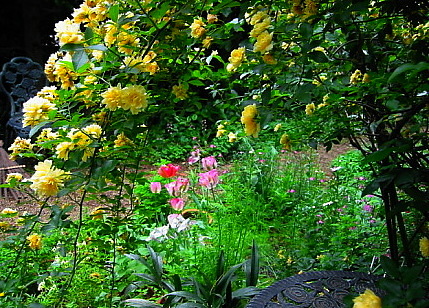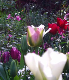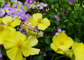 ![]() 5月 はや冬越しのペチュニアも咲いて・・・ チューリップもシラーカンパニュラも白 ピンク、ブルーと。 上のアリューム トリエクトラムこの中で咲いてます。 ↓ こんな風に(^^) オンフロディス・・・ヤマルリソウを思わせる花の形。大きさも似ています。 昨年の白い花のミックスシードからはじめて咲きました。 ++++++++++++++++++++++++++ ゴールデンウィークは久しぶりにたっぷりと庭で過ごしました。 勢いを増した雑草とり、鉢で育った苗の植え込み、少しはきれいになりますが 不用意に体が触れて蕾を折ったり、小さな苗を踏んだり・・・ 右端の熊手もぼろぼろになるほど。 ナニワイバラ(左)と今年初めてのクリーム色のセージとオギザリス(右) サルマヘンリー、すっかり我が家の一員となったようで種が飛ぶのでしょう。 花壇のあちこちで増えてます。 久しぶりに植えたヒメハナビシソウとオーブリエチア タシャ チューダーの庭に習って植えたチューリップ なのに・・・全くいつもの年と変わりないと変わりない咲き方・・・トホホ +++++++++++++++++++++ なんでも初めてというのはわくわくドキドキ もうすっかりお馴染みのムスカリですが 3種セットの我家では初めてのムスカリです。 ムスカリ・アズレウム ムスカリ・バレリーフェニス ムスカリ・ゴールデンフラグランス 上と同じムスカリ・ゴールデンフラグランスですが はじめは紫がかった色でこれもステキでした。 フラグランス・・・はスイセンの香りでした! 宿根のナデシコ(左)と今年初めて友人のところから来たシラユキゲシ(右) 美人に例えられるボタン、我家では存在感が薄いのです。 花は小さければ小さいほどステキ!なんて思っている庭の主です。 でもホウ?外側の花弁?がこんな斬新な縞模様で面白いと思いました。 今年は次々と咲いてくれたキバナホウチャクソウ(左)とヒメウズ(右) 植木鉢のなかで一人?悠々と咲き出したオニタビラコ ++++++++++++++++++++++ 2年前に阿蘇で咲くオキナグサの種を頂いてやっとこの春に花が咲きました。 以前に花の咲いた小さな鉢を買ったのですがすぐだめにして難しい・・・なんて思っていましたが こんどは種から・・・きっと我が家に馴染んで育ったからでしょうか 花数こそ多くはありませんが元気に咲いて嬉しいものです。 そんな時、掲示板常連の方からのご紹介で新しく出版される野草の図鑑に 以前に富士山麓で写したオキナグサの写真一枚が載り、その図鑑が送られてきました。 オキナグサ・・・ちょっと因縁めいて^_^; ![]() |