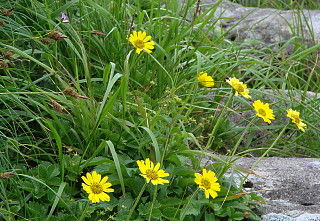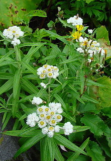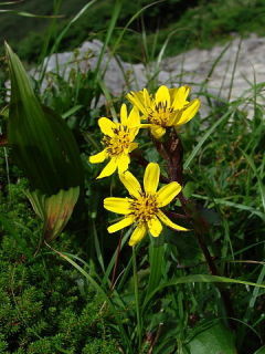 左ヤマハハコとイワニガナ 右トウゲブキ、月山が南限とか・・・