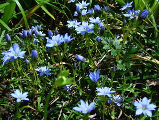 左タテヤマウツボグサ 右ミヤマリンドウの大株