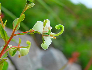 左ミヤマホツツジ と ホソバイワベンケイソウ(雄株と雌株があるとか)雌株?