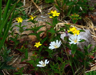 シロバナニガナとイワオトギリ
