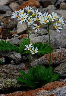 左、シロバナトウチソウ 中央ハクサンチドリ 右 ヒナザクラ