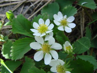 左イワハタザオ 右ノウゴウイチゴの花